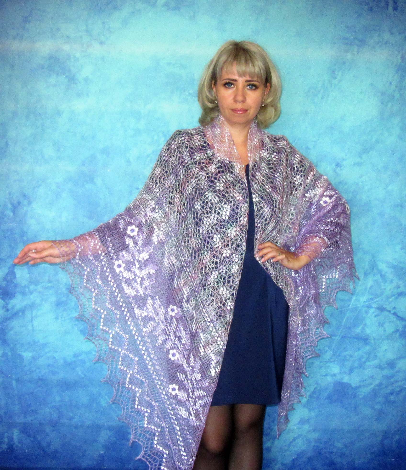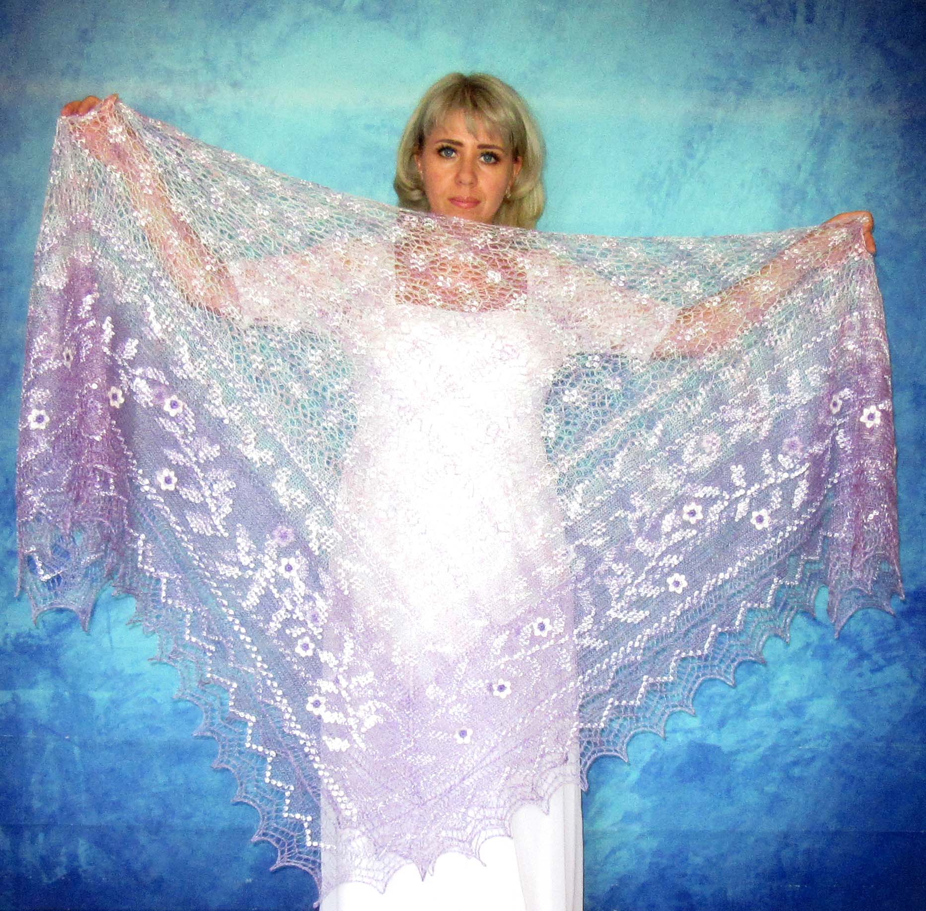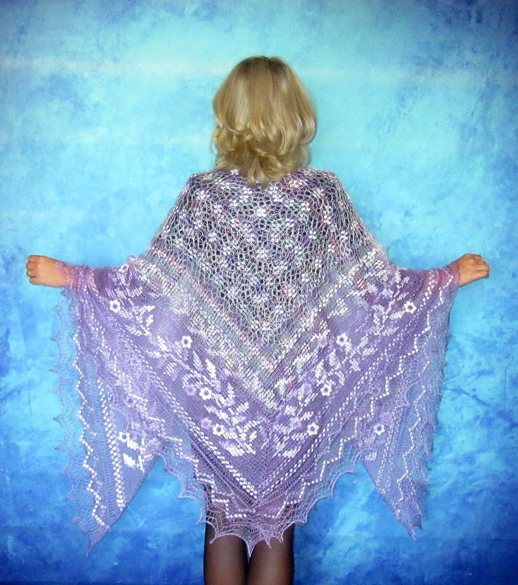Gestrickter Ziegenflaum Schal Orenburger Schal Pelerina Strick Stola mit Stickerei Handmade